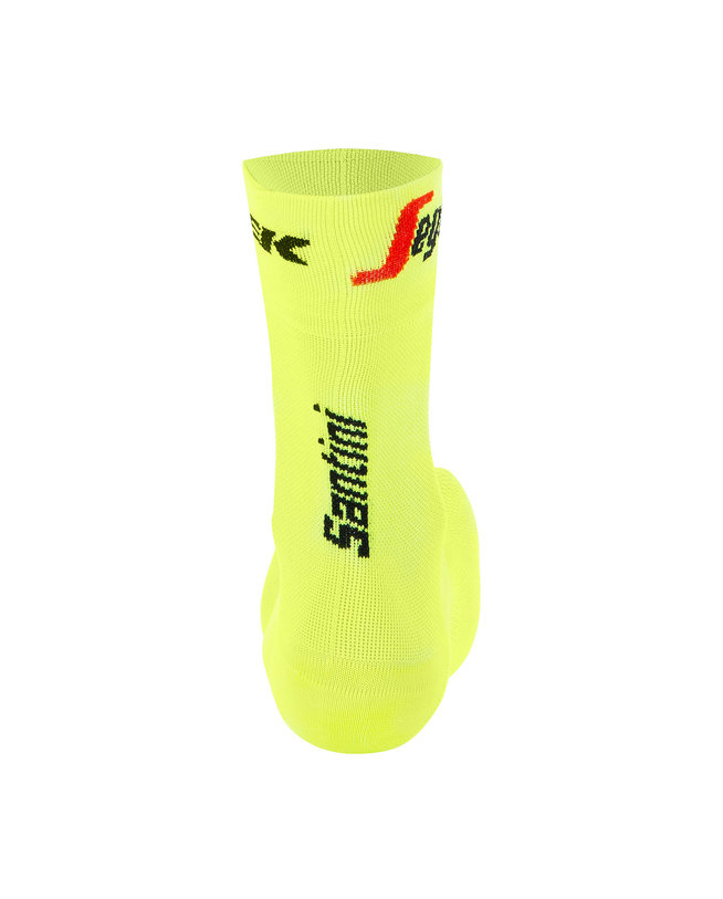 Radsocken des offiziellen Team-Ausrüsters in aktuellem Teamdesign aus Temperatur ausgleichender und angenehmer Meryll Skinlife Funktionsfaser mit atmungsaktivem Netzstrick über dem Spann.