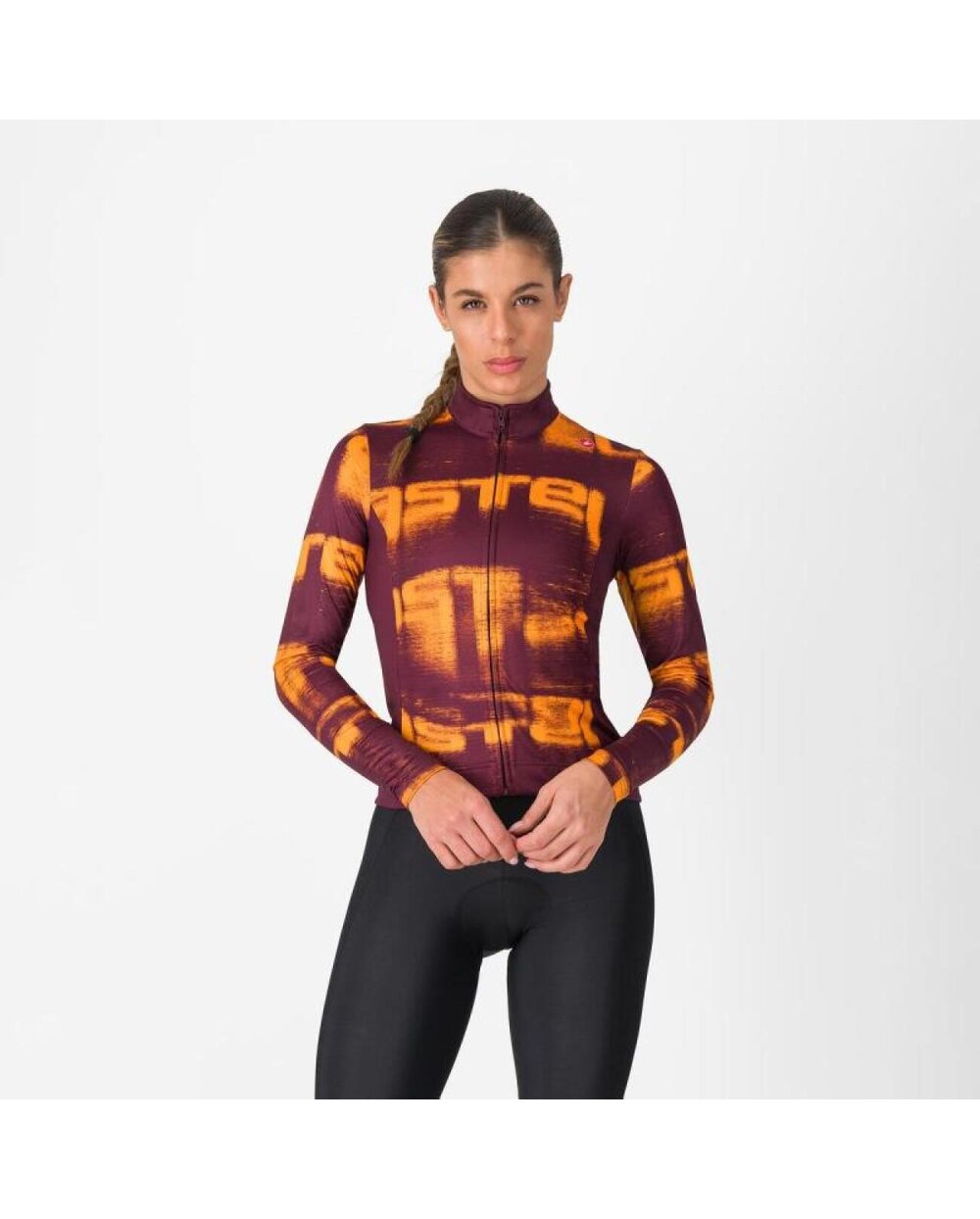 Langarm Fahrradtrikot für den Winter CASTELLI BLUR THERMAL Rot/Gelb