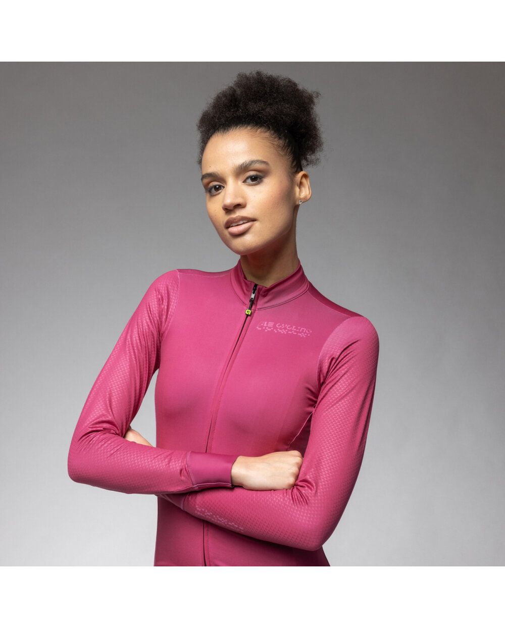 Langarm Fahrradtrikot für den Winter Alé PR-E FOLLOW ME 2.0 LADY Rosa