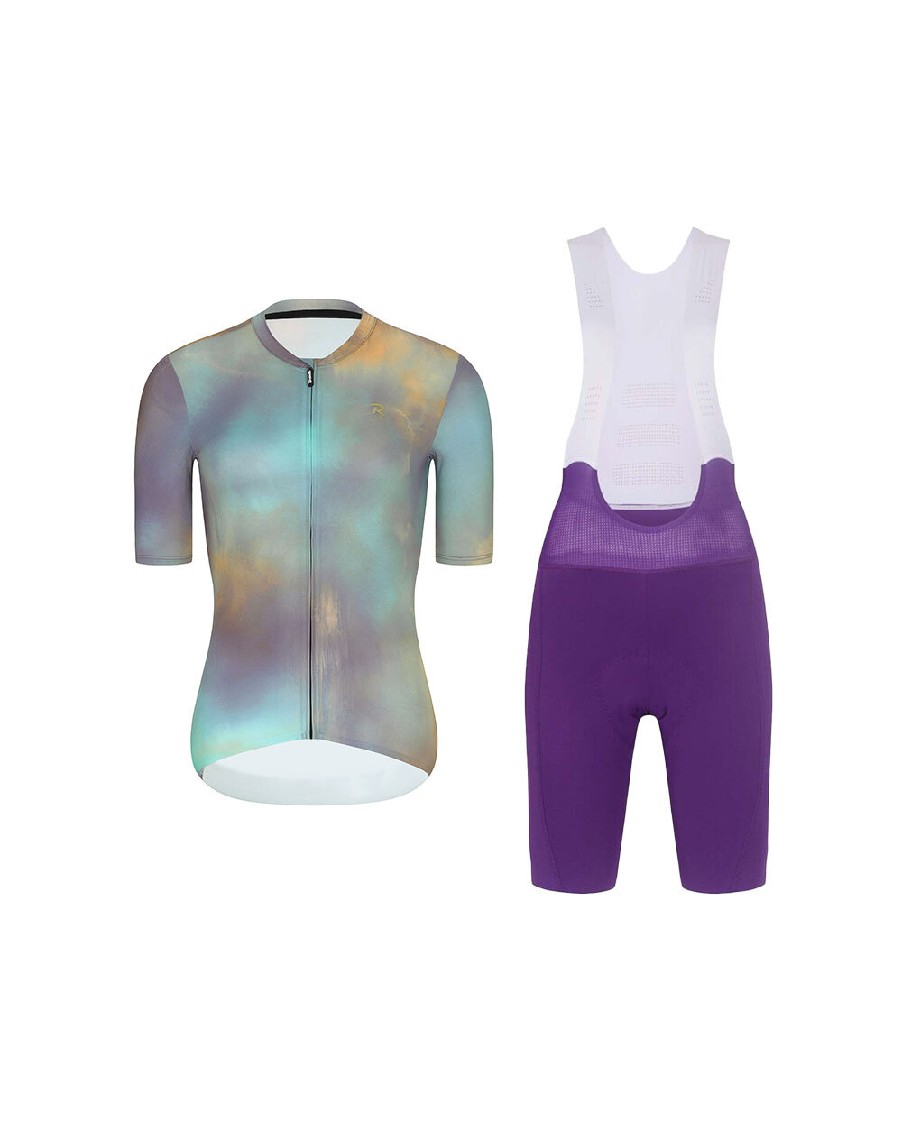 Dieses Set ist die ideale Wahl für Radfahrerinnen, die Funktionalität, Komfort und markanten Stil verbinden möchten. Das violett-goldene Trikot in Kombination mit den violetten Hosen ergibt ein modernes und stilvolles Outfit, in dem Sie sich auf jedem Kilometer selbstbewusst fühlen werden.