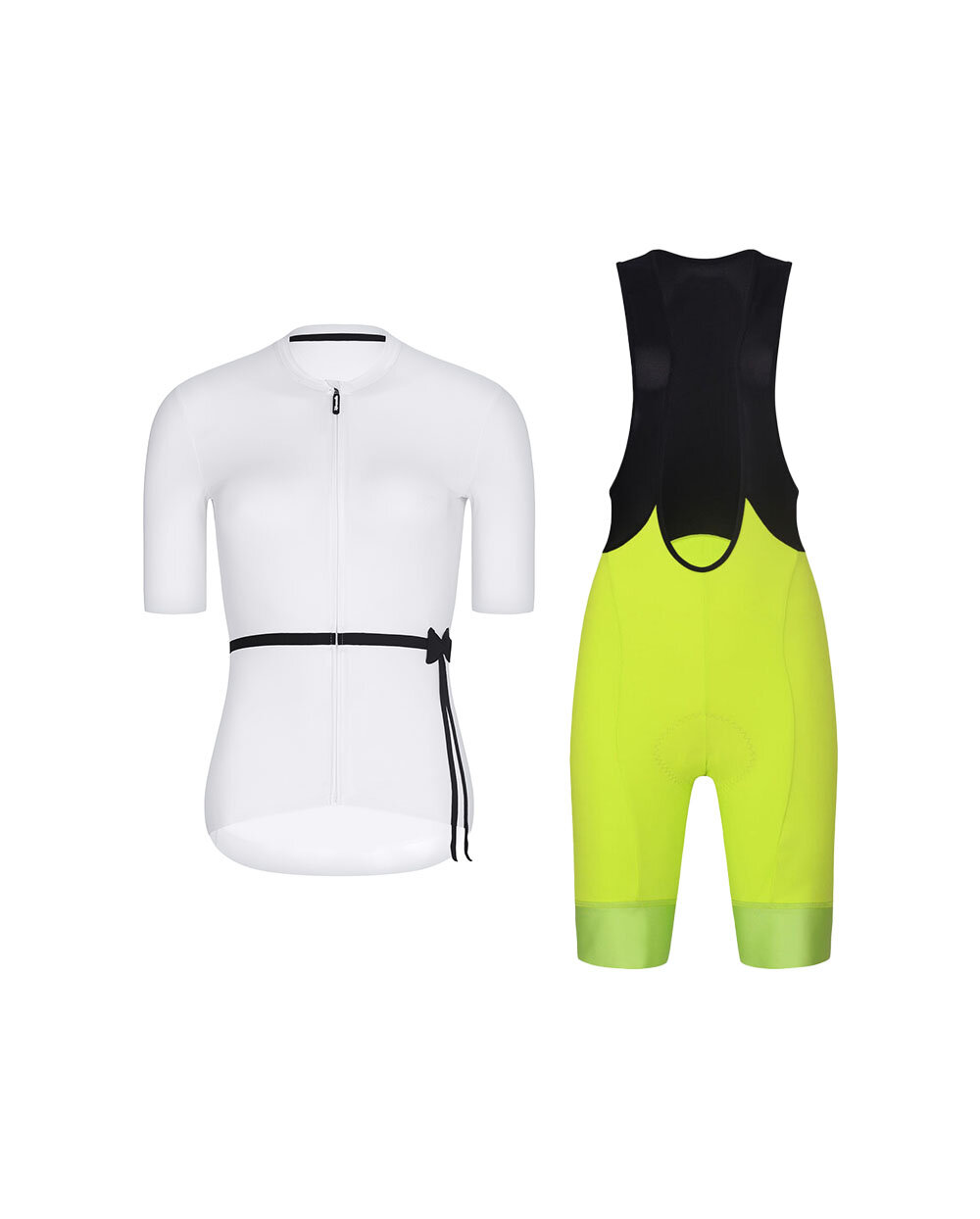 Das stilvolle und funktionelle Rivanelle-Radsport-Set ist die ideale Wahl für Radfahrerinnen, die Eleganz, Komfort und zuverlässige Leistung bei ihren Sommerausflügen miteinander verbinden möchten. Die Kombination aus dem kurzärmeligen Trikot LOVELY in Weiß und der kurzen Radhose mit Trägern ACTIVE ELITE in Gelb-Schwarz sorgt für einen attraktiven Look und hohen Komfort bei jedem Kilometer.