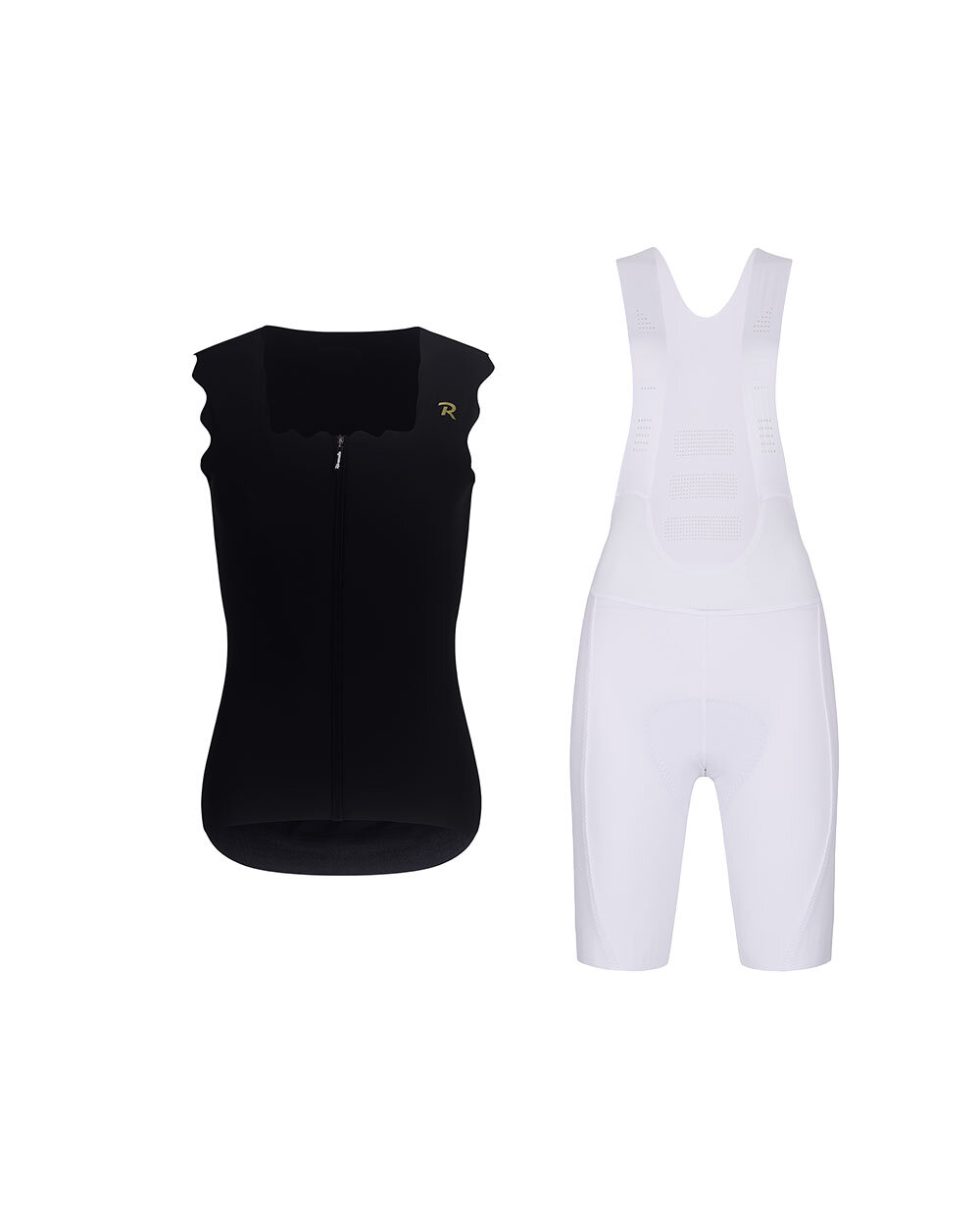 Das stilvolle und funktionale Rivanelle-Radsportset vereint markantes Design mit Komfort und Leistung, die Sie sowohl bei sportlichen als auch bei Freizeitfahrten zu schätzen wissen werden. Die Kombination aus dem ärmellosen Trikot SCALLESSA in Schwarz und der kurzen Hose mit Trägern NOVEL PRO in Weiß ergibt ein elegantes, modernes Outfit für Radfahrerinnen, die auf dem Fahrrad toll aussehen und sich gleichzeitig rundum wohlfühlen möchten.