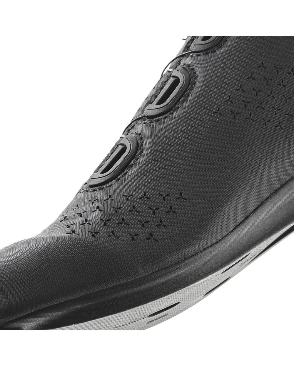 Präzises und gleichmäßiges Spannen wird durch das mikroverstellbare BOA L6-System ermöglicht, das die Bildung von Druckstellen verhindert. Der Komfort wird durch die anatomisch geformte Comfort Fit Tongue mit Polsterschicht erhöht, während der integrierte Anti-Rutsch-Fersenbereich zu besserer Stabilität und Kontrolle beiträgt. Anatomische EPS Transpirant-Einlegesohle und EPS Carbon Power Sole 8.0 aus kohlenstoffverstärktem Nylon sorgen für effiziente Kraftübertragung und Komfort beim Rennradfahren.