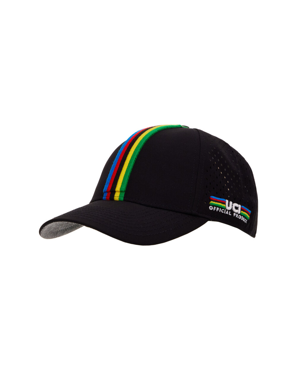 Baseballmütze (gebogener Schirm) mit gesticktem UCI World Championships Rainbow Stripes Design auf der Vorderseite und Santini x UCI Logo an der Seite. Das Cap hat ein mikroperforiertes Mesh auf der Rückseite, während das offizielle, von den UCI Rainbow Stripes inspirierte Design in 3D-Stickerei ausgeführt ist. Verstellbar für eine bequeme Passform. Tragen Sie es als lässiges Accessoire, um Ihre Leidenschaft für die UCI-Weltmeisterschaften zu zeigen.