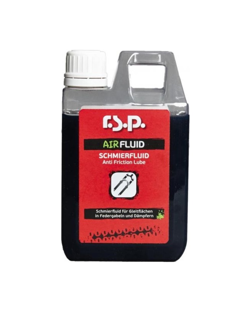 RSP Air Fluid ist ein Spezialschmierstoff zur Schmierung der Gleitflächen und Gleitlager von Federgabeln und Stoßdämpfern. Anwendbar in Luftkammern zur Schmierung von Luftdichtungen, um ein Festfressen von Stoßdämpfern und Gabeln zu verhindern. Reduziert die Reibung und schützt die Dichtungen vor Verschleiß. Aufgrund der zugesetzten Additive ist Air Fluid extrem langlebig, ohne dass es ausgetauscht werden muss, hat antikorrosive Eigenschaften und seine Viskosität wird nicht von der Außentemperatur beeinflusst.