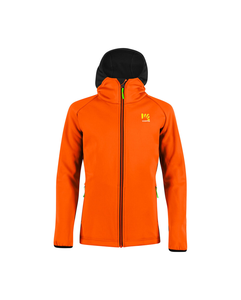 Kinderjacke mit Kapuze Karpos Lavaredo ist für das Laufen und andere Aerobic-Aktivitäten im Winter konzipiert. Dank der Hybridkonstruktion bietet die Vorderseite Schutz vor Wind und Wärmespeicherung, während die atmungsaktiven Seiten und die Rückseite den Schweiß effizient ableiten und Überhitzung verhindern. Eigenschaften der Jacke