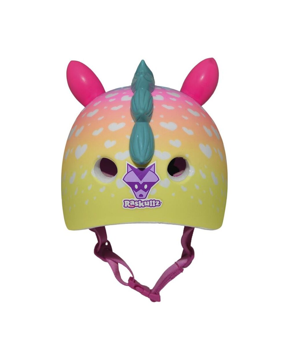 Unsere Kinderhelme sind wild... genau wie Ihre Kinder. Warum also ihre Fantasie für etwas so Freies wie das Radfahren zähmen? Genießen wir es alle in vollen Zügen! Die Raskullz- und Krash-Helme sind eine Kombination aus tollem Design, das Kinder lieben werden, und moderner Technologie zur Herstellung von Fahrradhelmen. Sie können nicht nur auf dem Fahrrad, sondern auch auf Skateboards oder Rollschuhen verwendet werden. Sie erfüllen die europäische Norm EN 1078.  Klemmsystem mit Radzug nach unten  EPS-Innenschale absorbiert Stöße  Belüftungslöcher  Kinnschnalle