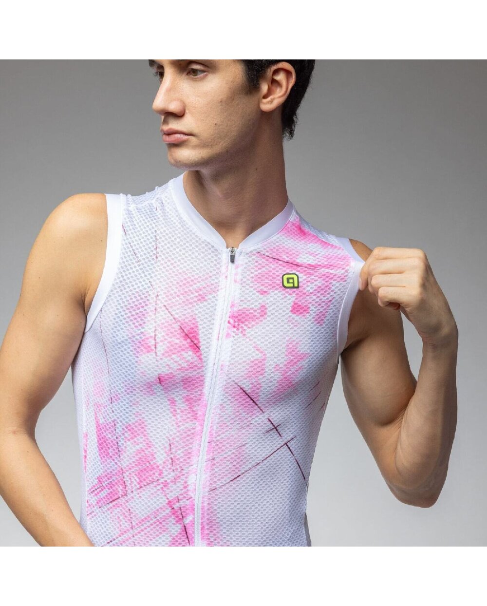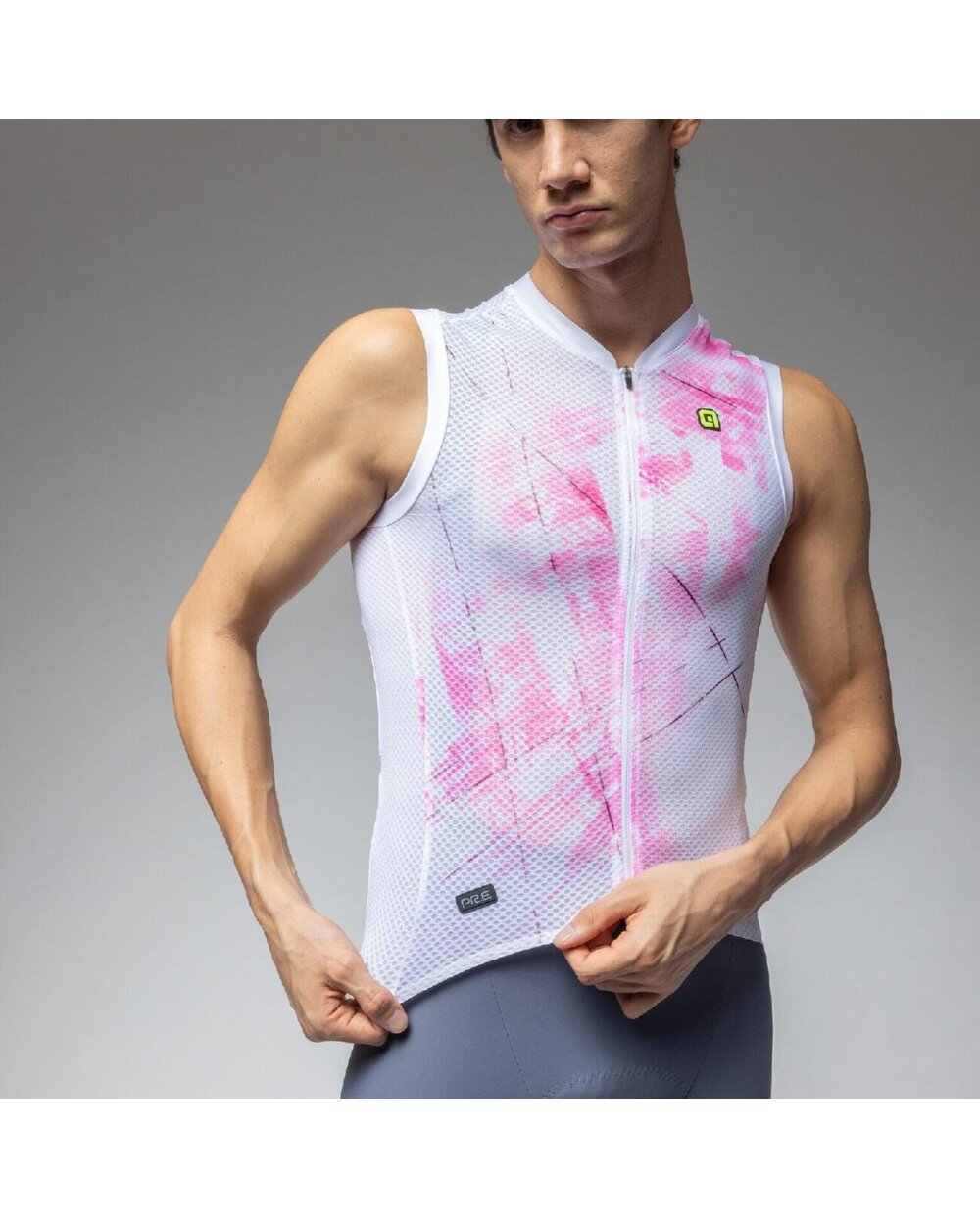 Alé MIRROR PR-E Ärmelloses Fahrradtrikot - Weiß/Rosa