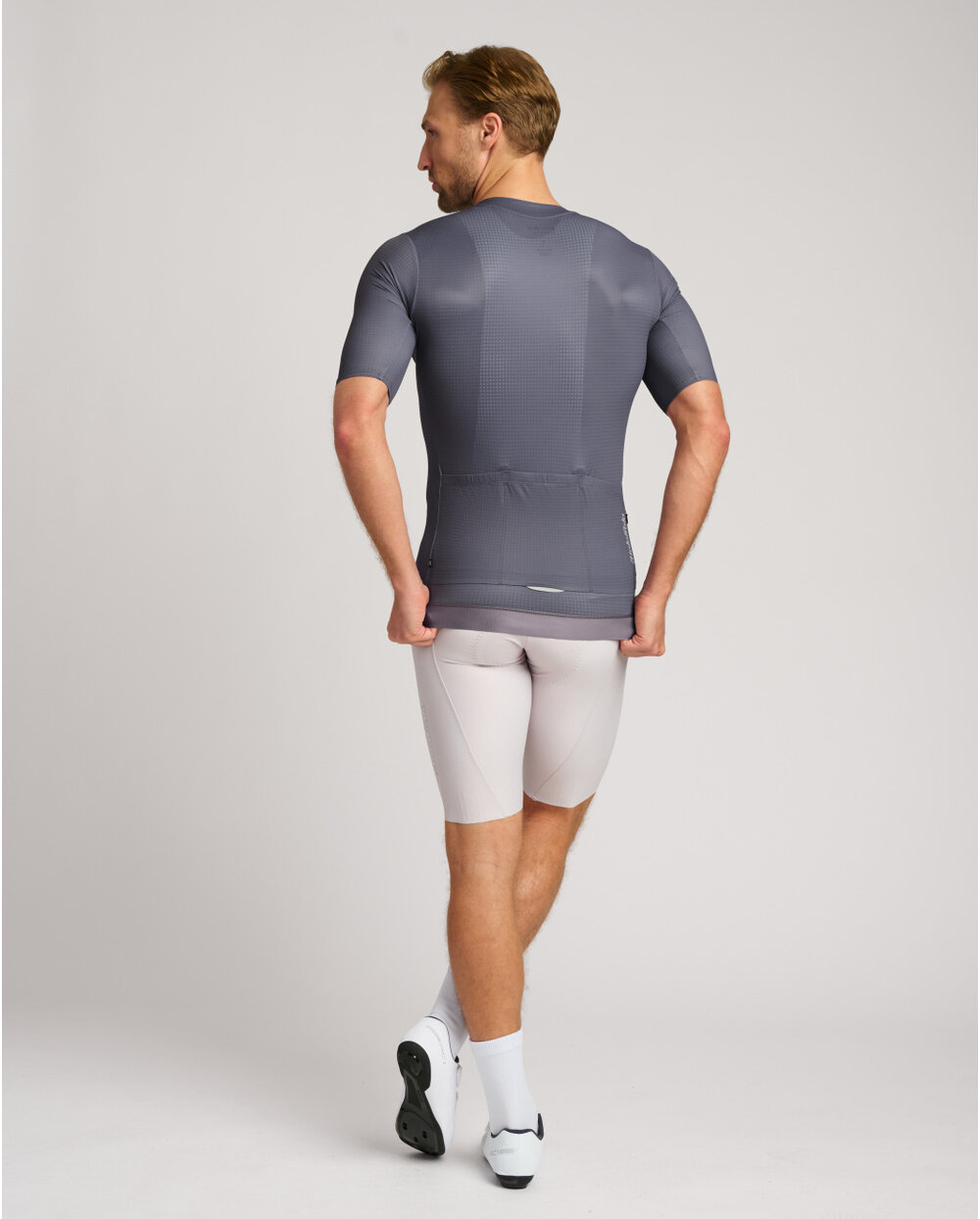Dank unseres neuen Gewebes mit atmungsaktiver Textur leitet es Feuchtigkeit auch bei hoher Leistung effektiv ab. Es passt sich der Figur an, behält die Form fest und beseitigt Fehler. Es verfügt über einen verbesserten Kragenschnitt und Reißverschluss mit Nackenschutz, drei Rückentaschen mit einer versteckten Reißverschlusstasche und eine rutschfeste Oberfläche auf der Rückseite des Trikots. Das minimalistische Design unterstreicht die Zeitlosigkeit des Trikots.