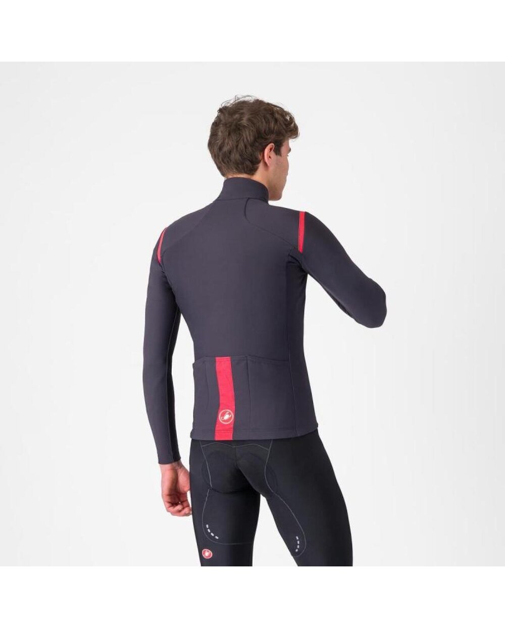 Dieses eng anliegende Design macht das Trikot wärmer, da es nicht im Wind flattert. Der zweite Grund ist die dichtere Stoffstruktur im Vergleich zu herkömmlichen Thermo-Trikots. Beide Verbesserungen verhindern, dass kalte Luft unter das Trikot gelangt, wodurch es wärmer wird. Ein weiteres Beispiel ist CASTELLIs patentierte wasserabweisende Nano-Oberflächenveredelung. An trockenen Tagen werden Sie es nicht einmal merken, aber wenn ein leichter Regen kommt oder Sie auf nasse Straßen stoßen, bleiben Sie trockener. Die letzte Verbesserung ist die 360°-Sichtbarkeit dank reflektierender Einsätze an den Schultern und am unteren Rücken.