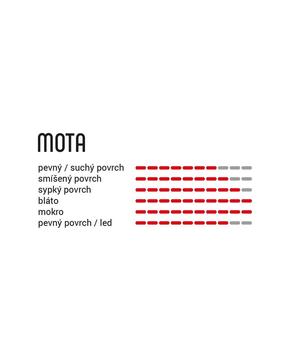die dann bei ihnen ohne große Schwierigkeiten ausreichend Halt findet. Mota ist bereit, überall dort eine Unterstützung zu sein, wo maximale Haftung und Sicherheit erforderlich sind, auch bei Nässe.