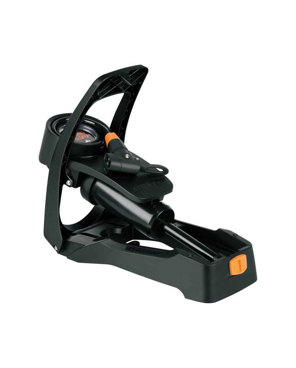 SKS Airstep Digi ist eine robuste Fußpumpe mit einem modernen digitalen LED-Display, das den Druck anhand großer und gut lesbarer Zahlen anzeigt. Dank des Aluminiumgriffs und des ergonomischen Designs ist das Pumpen mit dem Fuß bequem und effizient. Die Pumpe ist mit allen Arten von Ventilen kompatibel und erreicht einen maximalen Druck von 7 bar / 102 PSI.Zu den praktischen Funktionen gehört die Möglichkeit, sie an die Wand zu hängen, das Display schaltet sich nach 30 Sekunden automatisch ab, um Energie zu sparen, und sie kann mit zwei AAA-Batterien betrieben werden. SKS Airstep Digi ist eine ideale Lösung insbesondere für Radfahrer ab 50 Jahren, die einfache Bedienung und hochwertiges Design zu schätzen wissen.Hauptmerkmale: • Robuste Fußpumpe mit Aluminiumgriff • Komfortables Fußpumpen • Zielgruppe: 50+ • Max. Druck: 7 bar / 102 PSI • Integrierter Schlauch für alle Arten von Ventilen • Kann an die Wand gehängt werden • LED-Anzeige in höchster Qualität • Energiesparmodus – Anzeige schaltet sich nach 30 Sekunden aus • Stromversorgung: 2× AAA-Batterien