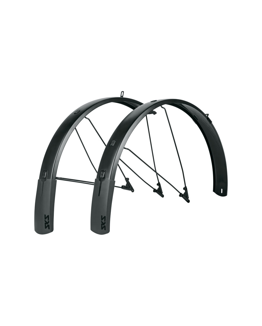 SKS Bluemels Style ist ein Kotflügelsatz mit flexiblem Spoiler, der einen hervorragenden Rundum-Spritzschutz bietet. Dank der flexiblen Sandwichbauweise, bei der feinste Aluminiumstreifen in eine Kunststoffbeschichtung eingebettet sind, ist der Kotflügel äußerst robust, steif und korrosionsbeständig. Das Modell verfügt über einen neuen V-Adapter mit ESC-Sicherheitssystem, das die doppelten U-Streben trennt, wenn Äste zwischen den Spitzen hängen bleiben. Dadurch soll verhindert werden, dass das Rad stecken bleibt. Mit einer mattschwarzen Lackierung und schwarzen Befestigungselementen haben die Schutzbleche ein einheitliches Design und zeichnen sich optisch aus.Inklusive Zubehör und Halterungen. • Aluminium-/Kunststoff-Sandwichkonstruktion • Mit flexiblem Spoiler • V-Adapter mit ESC-Sicherheitssystem • Robuste Doppel-U-Streben • Hergestellt in Deutschland Farbe: mattschwarz Rad Größe: 27,5" - 29" Reifenbreite in mm: 30-45mm Länge des vorderen Kotflügels: 500mm Länge des hinteren Kotflügels: 800mm