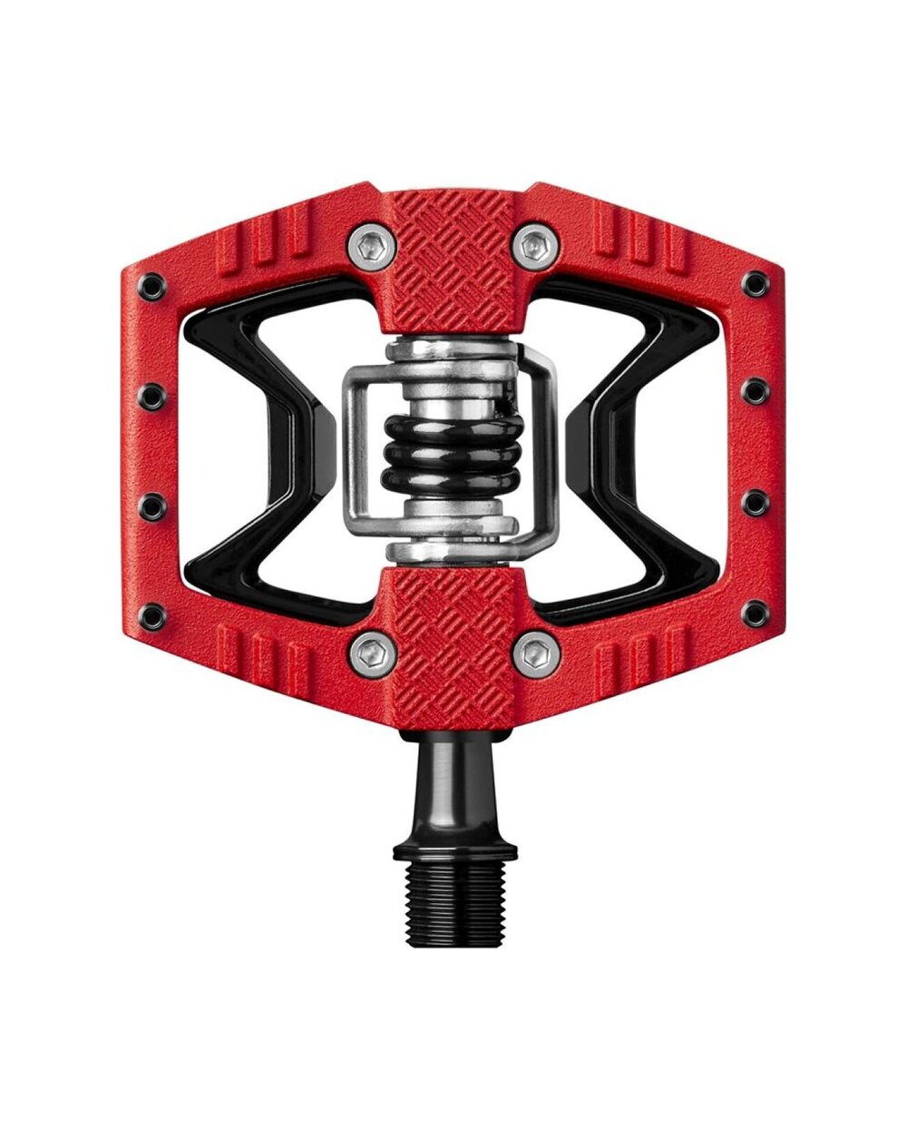 Das Double Shot Sortiment ist für diejenigen, die Pedale ausprobieren wollen, oder für diejenigen, die beide Optionen behalten wollen. Double Shot bietet eine flache Plattform auf der einen Seite und ein Schloss auf der anderen Seite des Pedalsystems. 8 verstellbare Pins.
