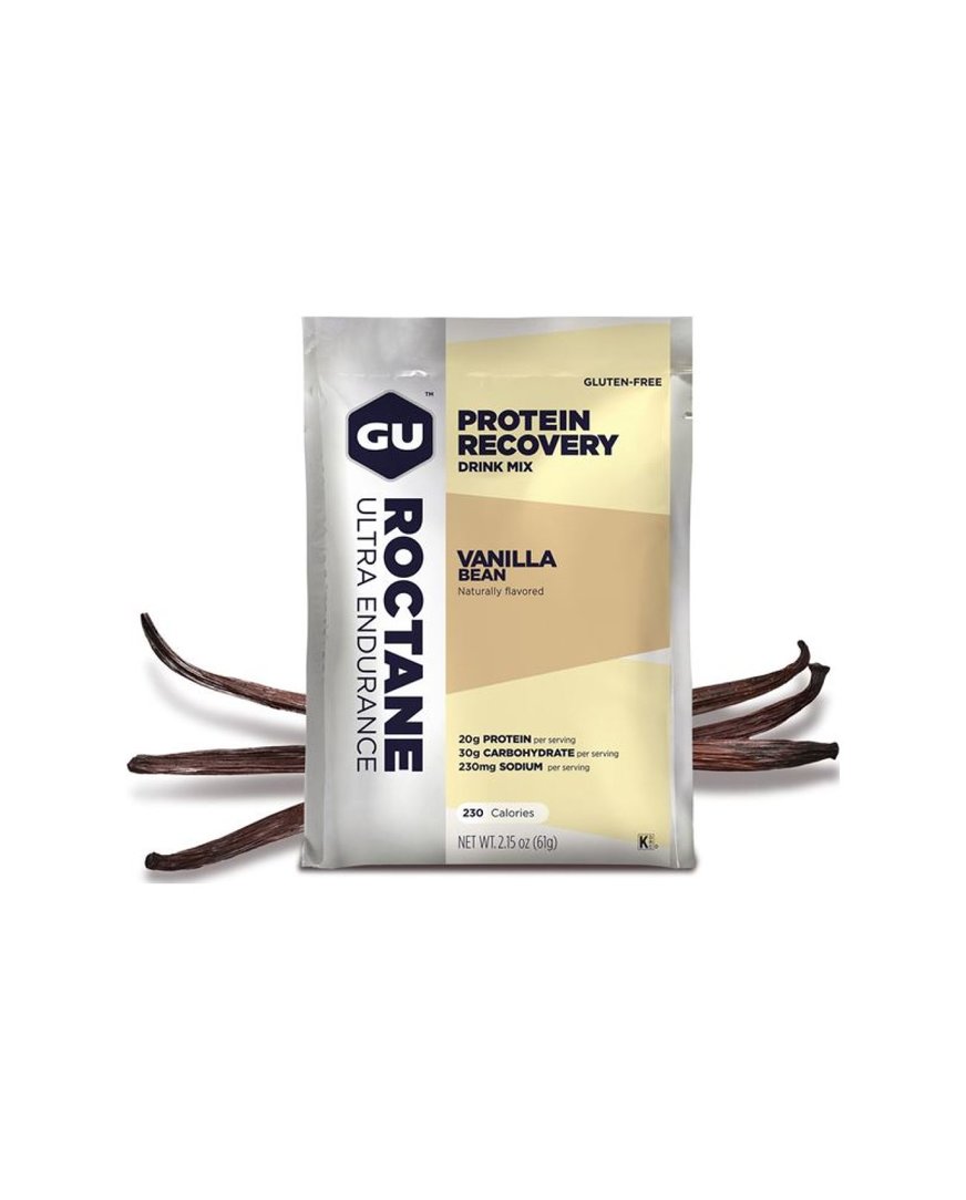 GU Roctane Recovery Drink Mix ist ein neues Erholungsgetränk, das den Athleten helfen soll, Flüssigkeit wieder aufzufüllen und die Muskelfasern zu schützen, damit sie am nächsten Tag ihr Training voll fortsetzen können. Roctane Recovery Drink Mix hat auf die Nachfrage der Sportler nach mehr Protein im Getränk gehört und liefert nun 2x mehr hochwertiges Protein als der ursprüngliche Recovery Drink, der sich der Roctane Familie anschließt. Der Recovery Drink enthält 20 g hochwertiges Molkenprotein pro Portion, um die Muskelfasern zu reparieren und wiederaufzubauen. Zusätzlich zum Molkenproteinisolat enthält der Drink auch ein Hydrolysat dieses Proteins, das sich durch einen höheren Leucingehalt auszeichnet. Leucin ist eine sehr wichtige Aminosäure für das Muskelwachstum. Dank dieser komplexen Zusammensetzung erfolgt die Muskelregeneration viel schneller und effizienter. Jede Portion enthält außerdem schnell wirkende Kohlenhydrate, die die Glykogenspeicher der Muskeln wieder auffüllen und zusammen mit dem durch Schwitzen verlorenen Natrium den Körper rehydrieren. Durch die Wiederauffüllung der Muskelglykogenspeicher wird keine Energie aus Muskelprotein verbrannt.