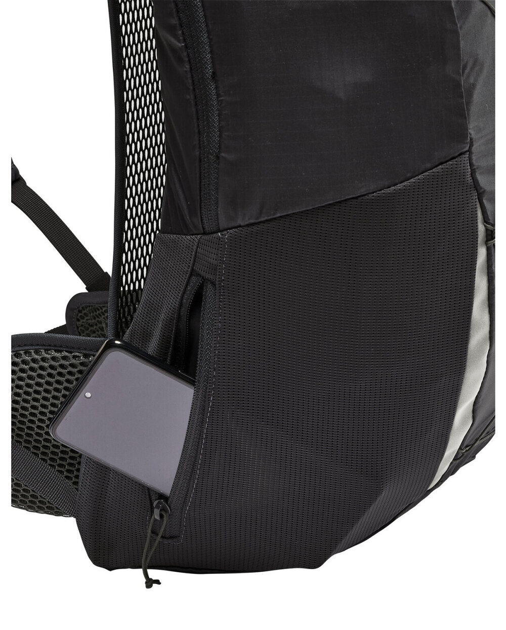 - Front- und Seitentasche mit Reißverschluss, Frontschnürung, reflektierende Elemente, Feuchtigkeitssystem-Eingang, Brustgurt mit Clip-Clip, integrierter Regenmantel