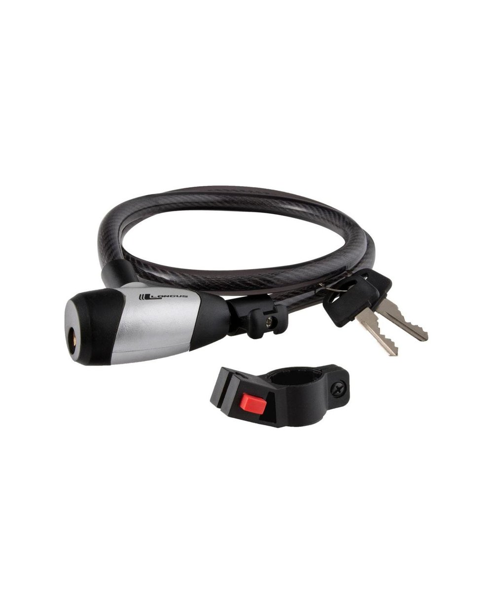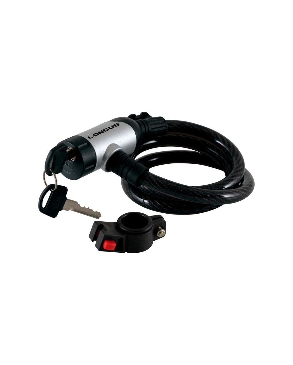 Stabiles, langes Spiralkabel-Schlüsselschloss mit Rahmen- oder Sattelstützenbefestigung. Es hat ein elegantes Gehäuse mit erhöhtem Schutz. Das Schloss wird verwendet, um Ihr Fahrrad oder Zubehör vor gelegentlichem Diebstahl zu schützen.