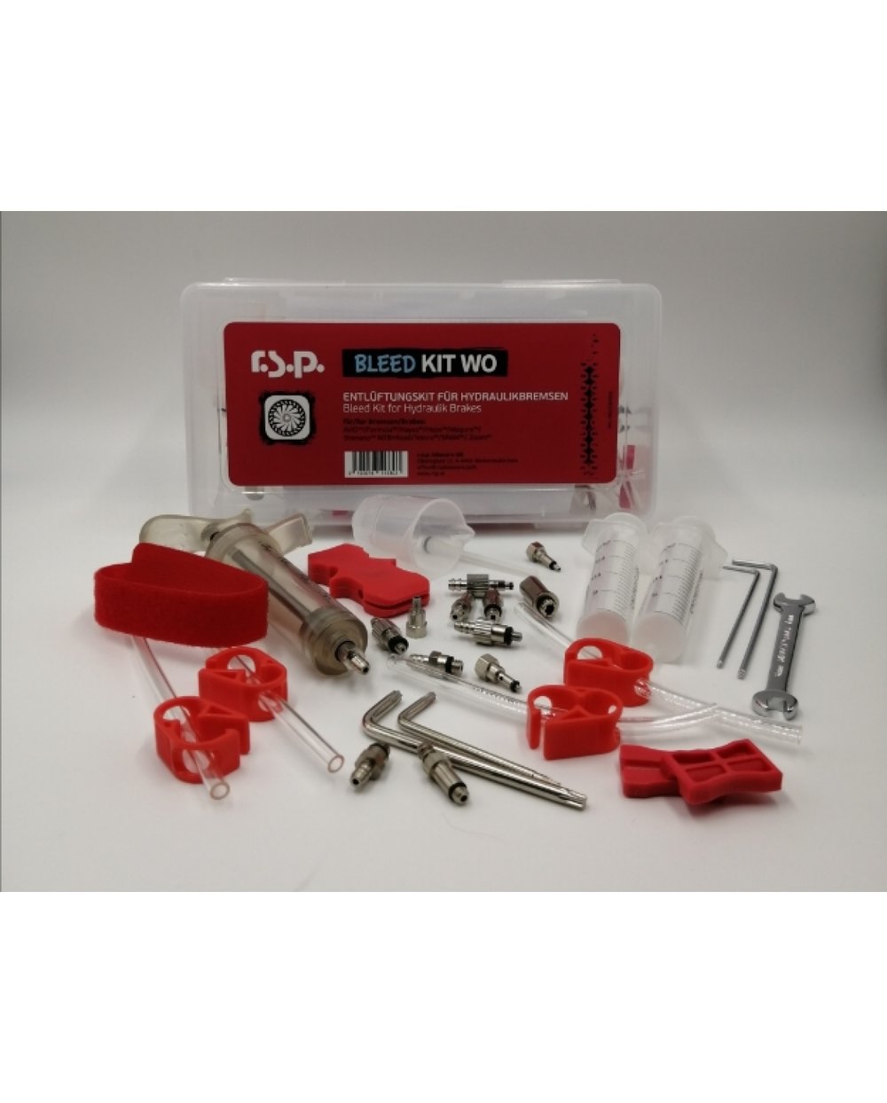Professionelles universelles RSP-Entlüftungskit für den professionellen Einsatz. Geeignet für alle Arten von Bremsen Das Kit enthält alles, was auf dem Bild zu sehen ist.