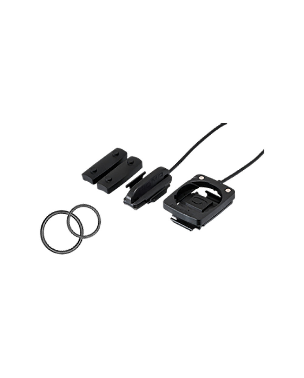 Paketinhalt: Halterung für den Geschwindigkeitsmesser, Kabel für den Geschwindigkeitssensor, Gummibänder zur Befestigung .