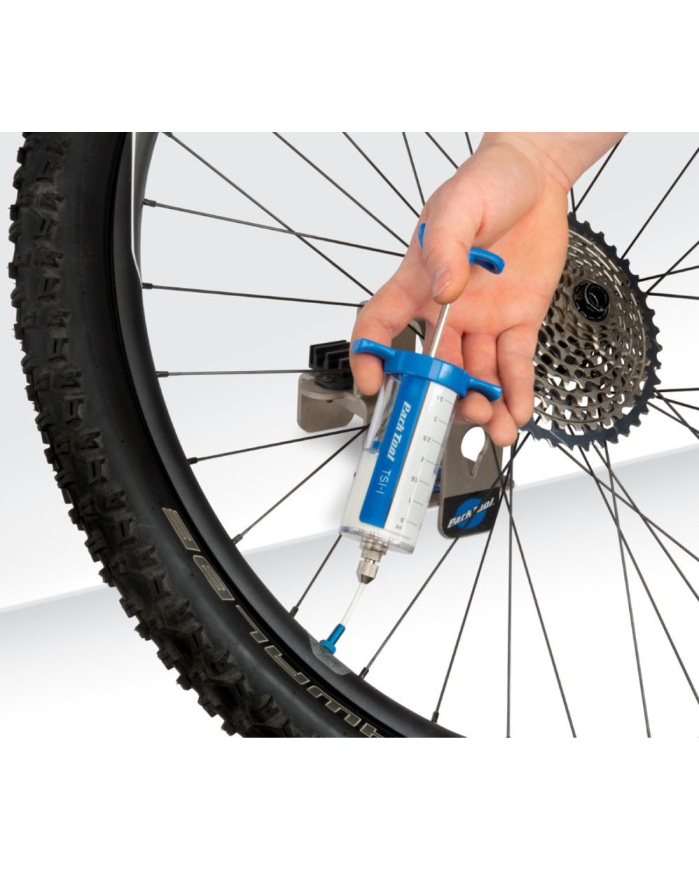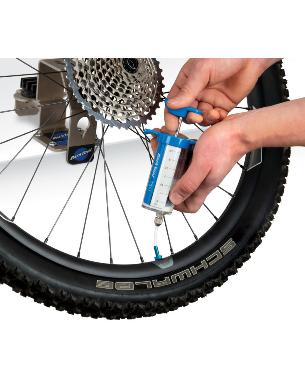 HINWEIS: Einige Ventile ohne Schlauch haben eine kleinere Bohrung als der TSI-1-Schlauch. In diesen Fällen muss der Schaft von der Felge entfernt werden, um das Dichtungsmaterial aus dem Mantel zu entfernen.