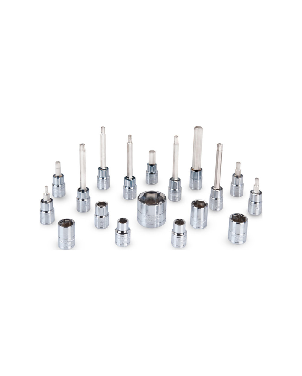 Köpfe 8-9-10-11-12-13-14-15 mm, 1", Inbus-Bits 3-4-5-6-8-10 mm, Torx T25-30-40,