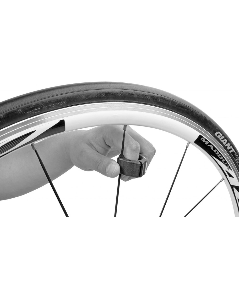 Der Speichenhalter dient zum Zentrieren von flachen Speichenrädern.
