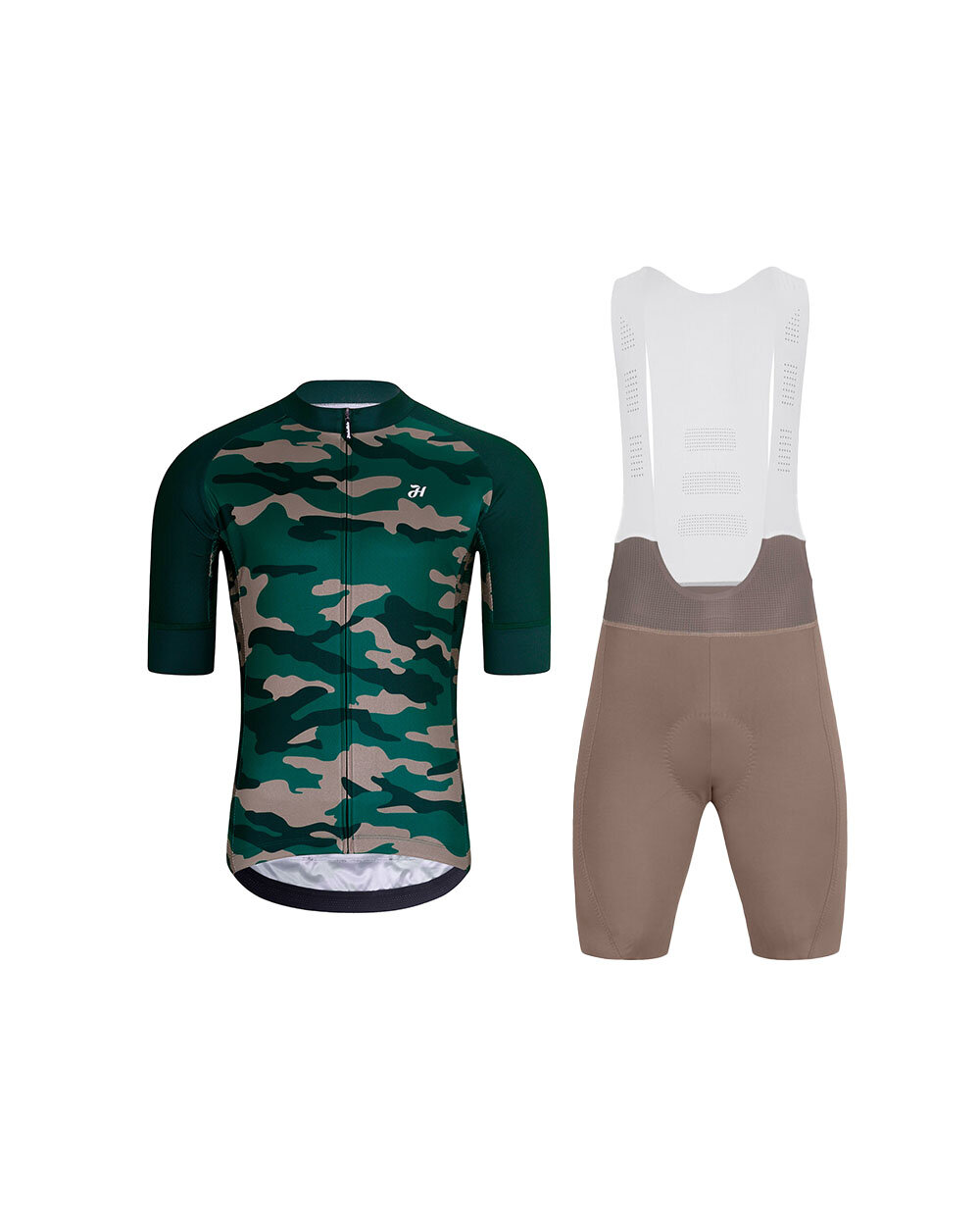 Dieses Radsport-Set der Marke HOLOKOLO kombiniert das vielseitige Trikot CAMOTRAIL in Grün mit den hochwertigen Shorts mit Trägern NOVEL PRO in Braun und bietet so eine ideale Kombination aus Komfort, Leistung und Stil. Es eignet sich für Radfahrer, die zuverlässige Kleidung für lange Trainingseinheiten, intensive Ausflüge sowie die tägliche Erkundung von Wald- und Feldwegen suchen.
